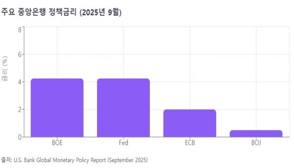 10일 로이터통신 등에 따르면 뉴질랜드 중앙은행은 지난 8일 시장의 예상을 깨고 0.5% 포인트의 금리 인하를 단행했다. 앞서 미국 중앙은행(Fed)은 지난달 17일 기준금리를 4.00~4.25%로 0.25%포인트 내렸다. 반면 유럽중앙은행(ECB)은 지난달 정책금리를 동결했다. 일본은행도 지난달 0.5% 금리를 동결하면서도 상장지수펀드(ETF) 등 보유자산 매각을 결정하며 점진적 긴축 의지를 내비쳤다.