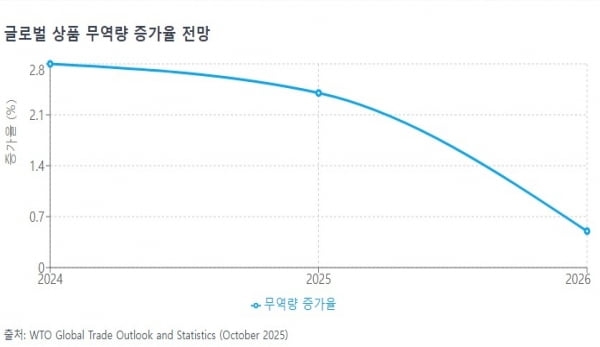 WTO는 최근 세계 상품 교역량 증가율 전망치를 2.4%로 상향 조정하기는 했다. 그러나 AI 관련 제품 수요 급증과 관세 인상을 앞둔 기업들의 '선행 구매'라는 일시적 요인의 영향이다. 관세의 충격이 본격적으로 반영될 내년 교역량 증가율은 기존 1.8%에서 0.5%로 대폭 하향 조정했다. 응고지 오콘조이웨알라 WTO 사무총장은 "내년 전망은 더욱 암울하며 매우 우려스럽다"며 "올해 무역 회복력에 절대 안주해서는 안 된다"고 강조했다.