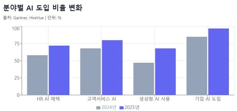 글로벌 IT 컨설팅 기업 가트너가 지난 5월 실시한 설문조사에 따르면 응답한 기업의 HR 담당자의 82%가 향후 12개월 이내 에이전틱 AI 기능을 도입할 계획이라고 밝혔다. HR 리더들은 에이전틱 AI가 2년 내 조직 전체 인력의 평균 9%를 대체할 수 있을 것으로 전망했다.