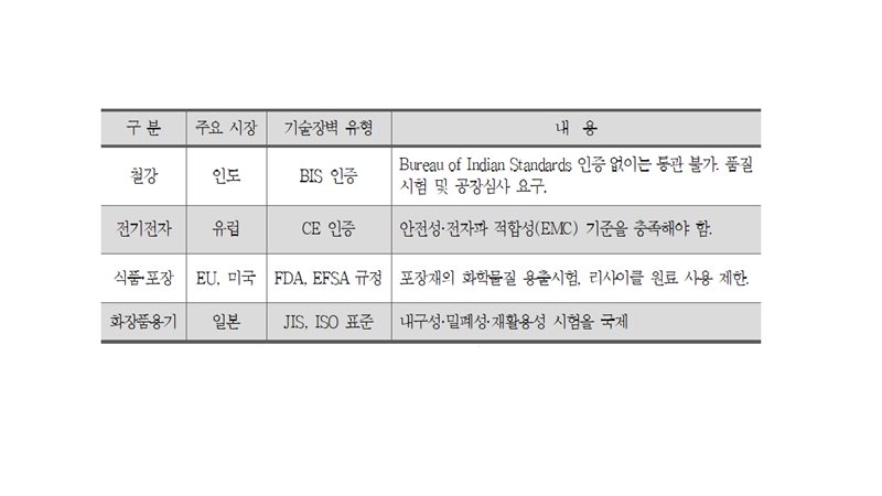 한국 수출품의 기술장벽 사례