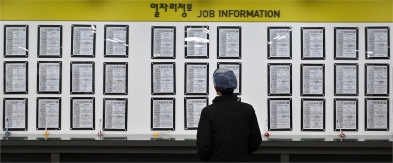 25일 오전 서울 마포구 서부고용복지플러스센터에서 한 시민이 일자리 정보를 살펴보고 있다.